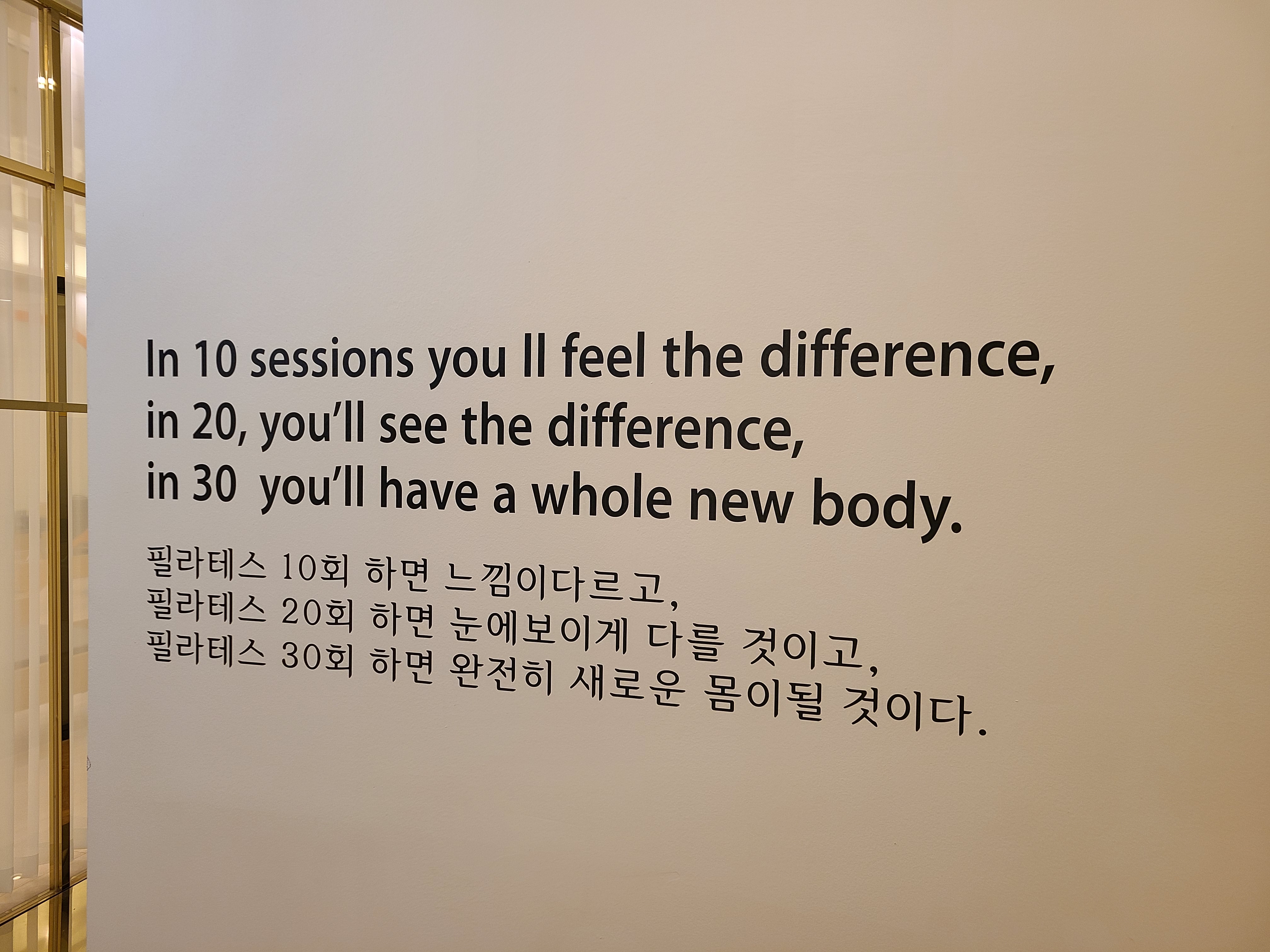 오늘 1:1 수업을 50회 정도 듣고, 그룹수업을 체험해봤는데, 분명 같은 수업임에도 더 쉽게 느껴졌다. 내가 다니는 장안동 필라앤핏 한쪽 벽면에는 이런 문구가 있다. 정말 필라테스는 내 몸을 새롭게 만들어준 운동이다. 완전 강추!!!!!!