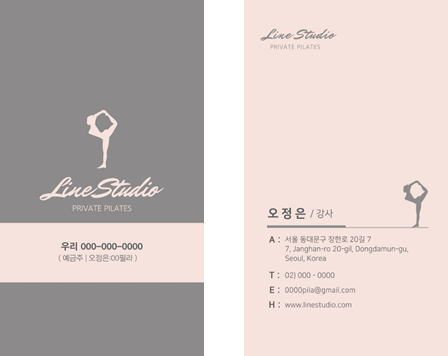 4주차에는 명함을 만들기 과제가 나왔다. 무슨 명함을 만들까 고민을 하다가 최근 필라테스에 빠져있어서, 나중에 꼭 필라테스 강사가 되어 이 명함을 써보자는 생각으로 필라테스 강사 명함을 만들어봤다. (연한 핑크색과 회색은 내가 주로 입는 필라테스 복 상하의 색깔. 정말 잘어울리는 조합이다.)