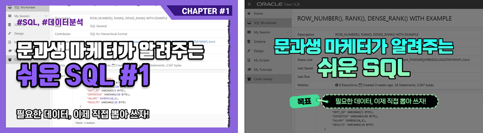1. 문구만 바꿔보라는 쌤의 가르침을 생각하며, 문구만 바꿀 수 있는 포맷을 찾음. 이 영상만 들으면 업무에 바로 적용할 수 있다는 것을 강조하려고 했음. ‘문과생 마케터가 쓰는 쉬운 SQL’은 원래 부제였음