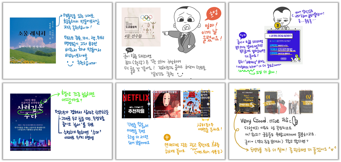 이미 전문 디자이너들이 구도(구성), 색감, 폰트 등 다 맞춰서 작업한 것이라 텍스트만 수정하는 것을 저는 제.일.강.추 합니다.