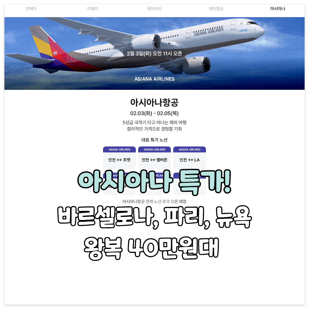 아시아나 특가는 2월 3일(화)~ 5일(목)까지 3일간 열린다.